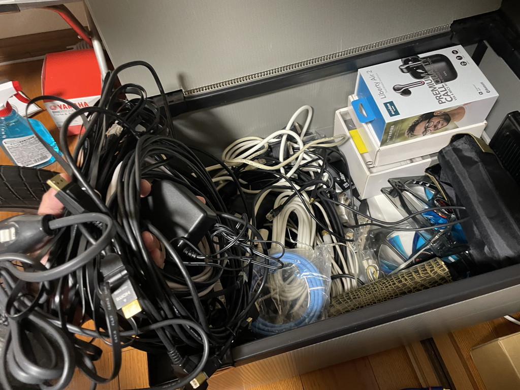 両側ミニピンジャックになっているステレオのオーディオケーブルを発掘。