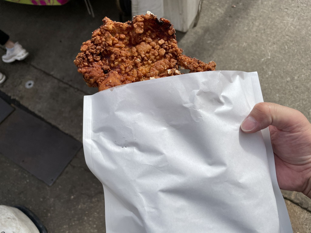 クッソデカ唐揚げをMy sonと奥さんに押し付けてポテトでも食いますよ。