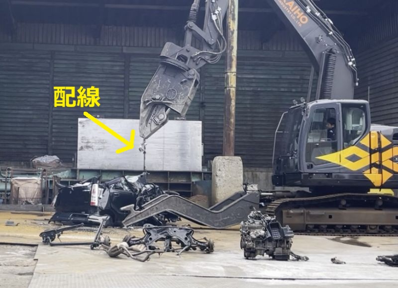 ごりらっくまさんからのコメントで、この重機は自動車解体用の「ニブラ」という車両だという事が判明しました。